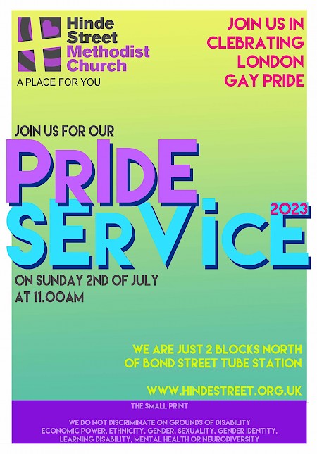 Our friends at Hinde Street Methodist Church, London, will be hosting a Pride Service at 11am on Sunday 2 July.